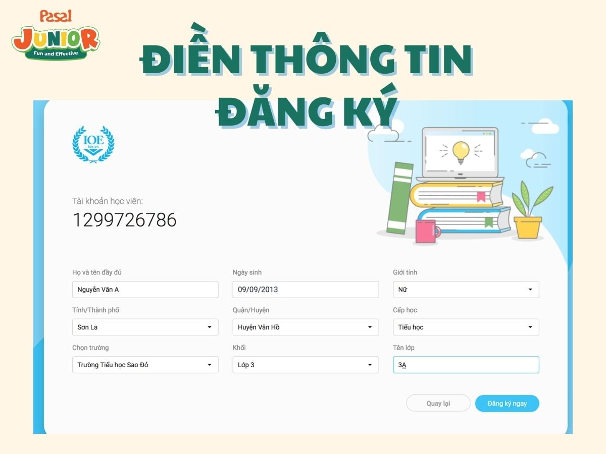 Nhằm có cái nhìn rõ hơn, Pasal Junior cung cấp thêm cách đăng ký thi Olympic tiếng Anh đơn giản cho ba mẹ. Để đăng ký tài khoản dự thi, hãy làm theo các bước hướng dẫn của BTC. Một học sinh có thể lập nhiều tài khoản để luyện tập, nhưng với kỳ thi theo cấp chỉ được dùng 1 tài khoản đã xác minh thông tin chính xác. Lưu ý học sinh lớp 1, lớp 2 chưa phải là đối tượng tham gia dự thi.