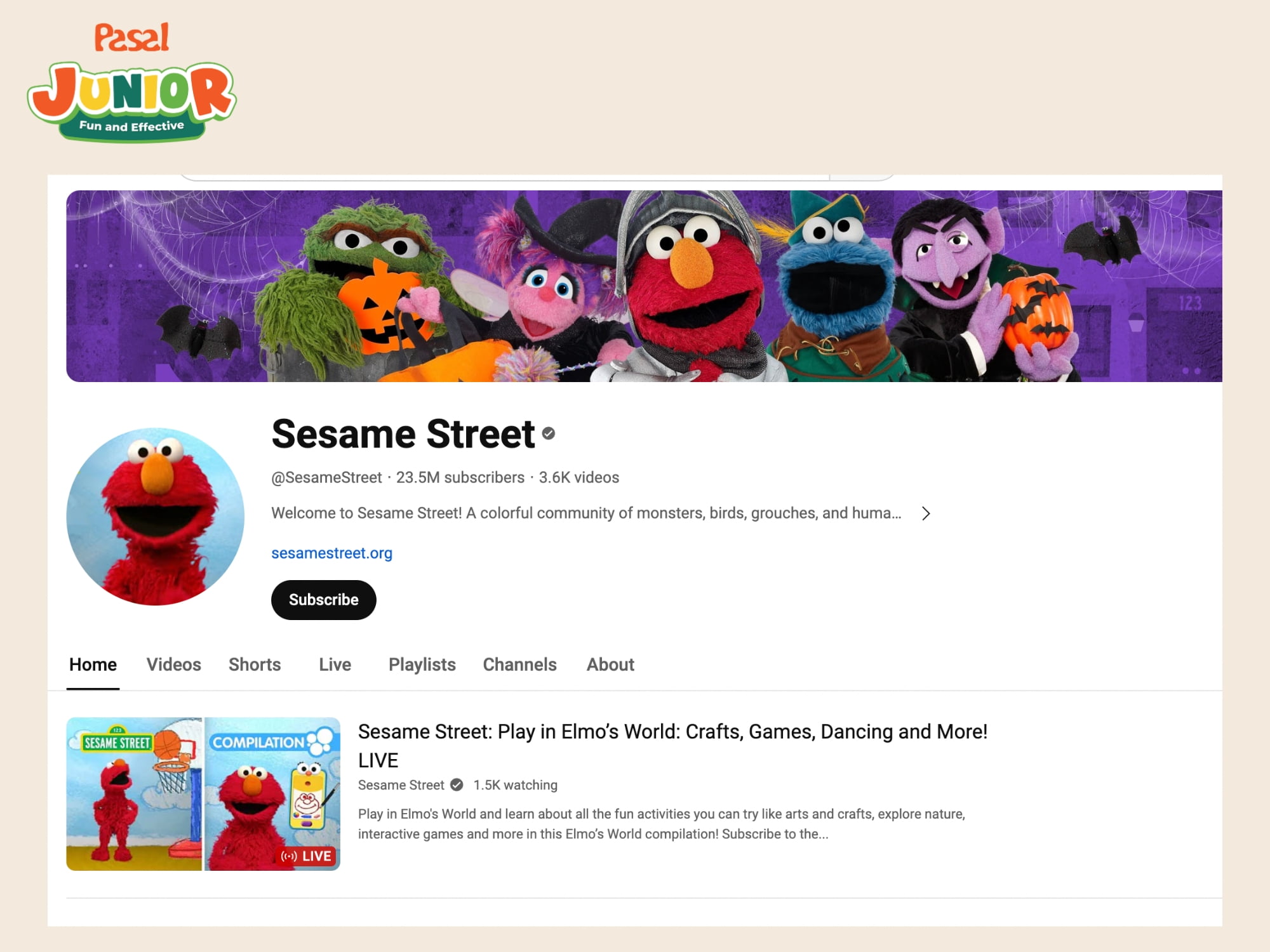 Sesame Street là một chương trình truyền hình mang tính biểu tượng với dàn nhân vật chính là những chú rối rực rỡ màu sắc. Kênh này liên tục cập nhật nội dung với những chủ đề thân quen như gia đình, bạn bè, thời tiết và đồ chơi.