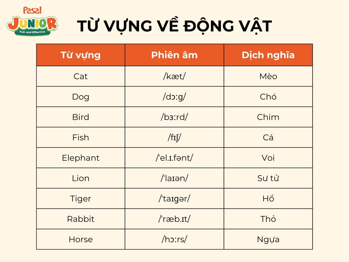 Học từ vựng theo chủ đề không chỉ giúp trẻ nhớ lâu hơn mà còn giúp chúng liên kết các từ với nhau theo một cách logic. Bài viết này, Pasal Junior sẽ cung cấp cho các bậc phụ huynh và giáo viên một danh sách hơn 200 từ vựng tiếng Anh cơ bản theo các chủ đề quen thuộc và dễ hiểu nhất dành cho trẻ em.