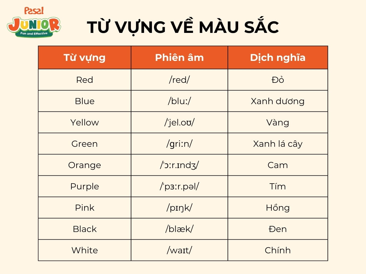 Màu sắc là một phần không thể thiếu trong cuộc sống và học tập của trẻ em. Dưới đây là một số từ vựng về màu sắc mà trẻ em nên biết.